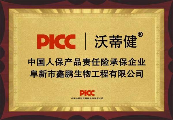 阜新市鑫鵬生物工程有限公司旗下沃蒂健、黑晶尖、芯霸、鑫鵬沃普爾、田寶畝、久畝神、九畝神、炭精神、稔如意、棚地神、松峰山、金禾財有根等系列產(chǎn)品,順利通過PICC中國人民保險審核,為企業(yè)全線產(chǎn)品承保產(chǎn)品責(zé)任險,證明公司產(chǎn)品的真實、合格,也標(biāo)志著阜新市鑫鵬生物工程有限公司為消費(fèi)者提供安全保障的決心。